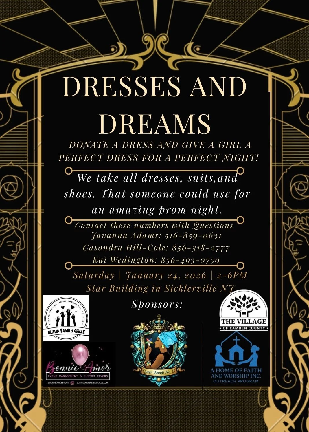 The Dresses & Dreams Event (below) will be postponed until further notice due to the pending storm.